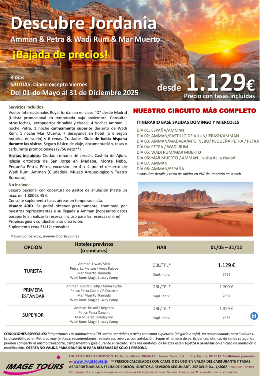Descubre Jordania *OFERTÓN* circuito 8 días con Amman, Mar Muerto, Petra y Wadi Rum, desde 1.129€
