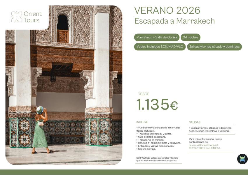 VERANO 2026 - Escapda a Marrakech 04 noches con vuelos desde 735€